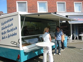 beschäftigt, bieten hier leckere Fischbrötchen oder